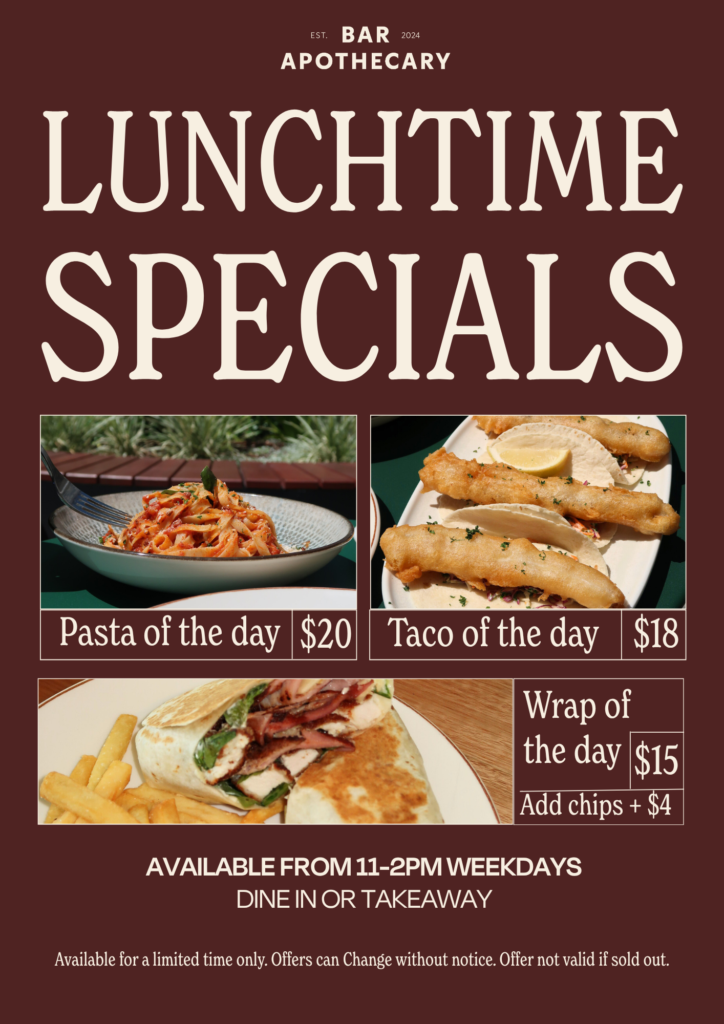 Available between available from 11-2PM weekdays. Dine in or Takeaway available