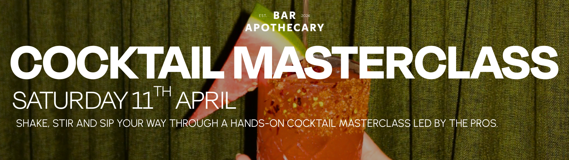 Join us for a fun and interactive Cocktail Masterclass on Saturday 11th April from 4pm, perfect for a day out with friends or something a little different.