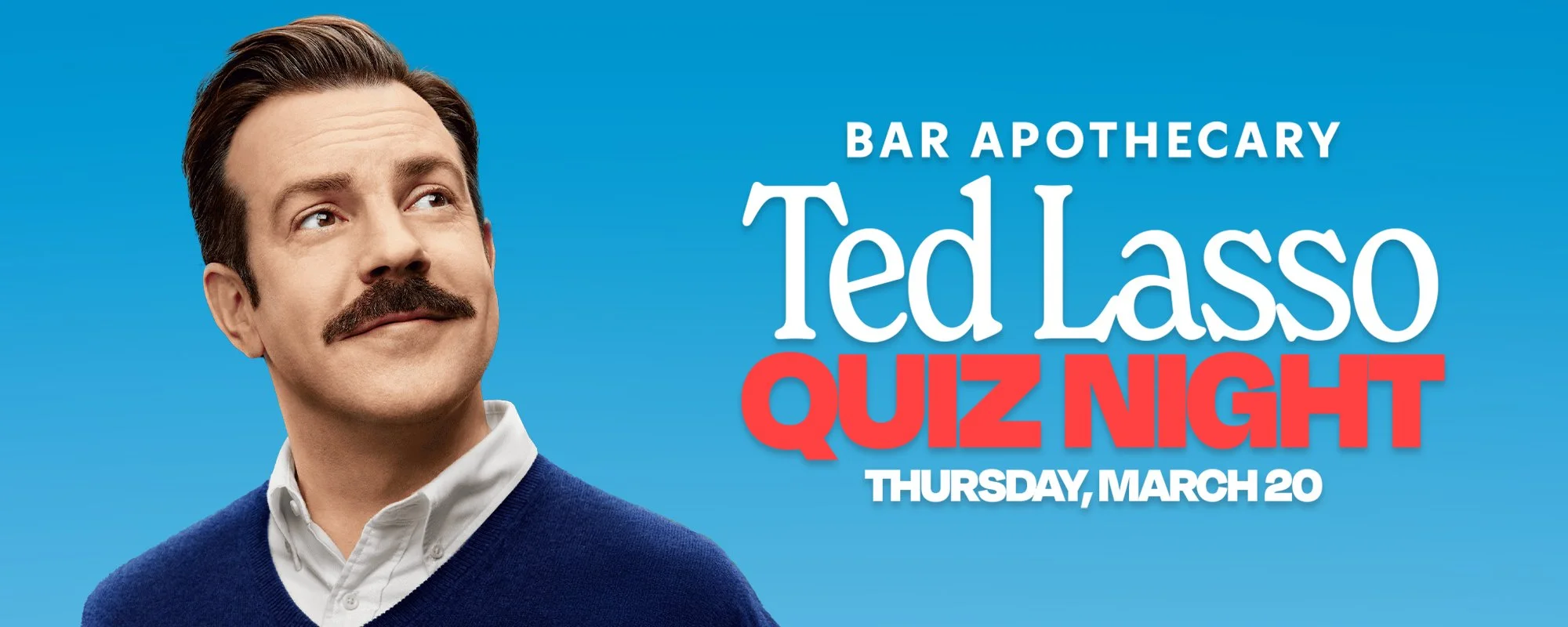 Believe it—Ted Lasso trivia is coming to Bar Apothecary! Think you know everything about AFC Richmond, Ted’s wisdom, and those famous biscuits? Gather your squad and put your knowledge to the test for a chance to win some awesome prizes. Whether you're a die-hard fan or just love a good underdog story, this is your night. Don’t forget to swing by for Happy Hour from 5pm–6pm before the quiz kicks off. Spots are limited, so book ahead and get ready for a night full of fun, football (yes, football), and feel-good vibes!